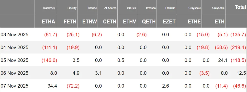 美国以太坊现货 ETF 净流出 5.07 亿美元
