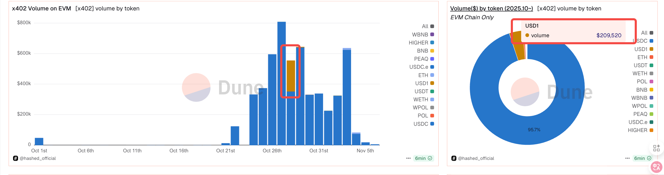What’s more interesting is the transaction distribution; b402's transaction volume began to grow steadily after October 26, which coincides with the time they released the USD1 payment demo.