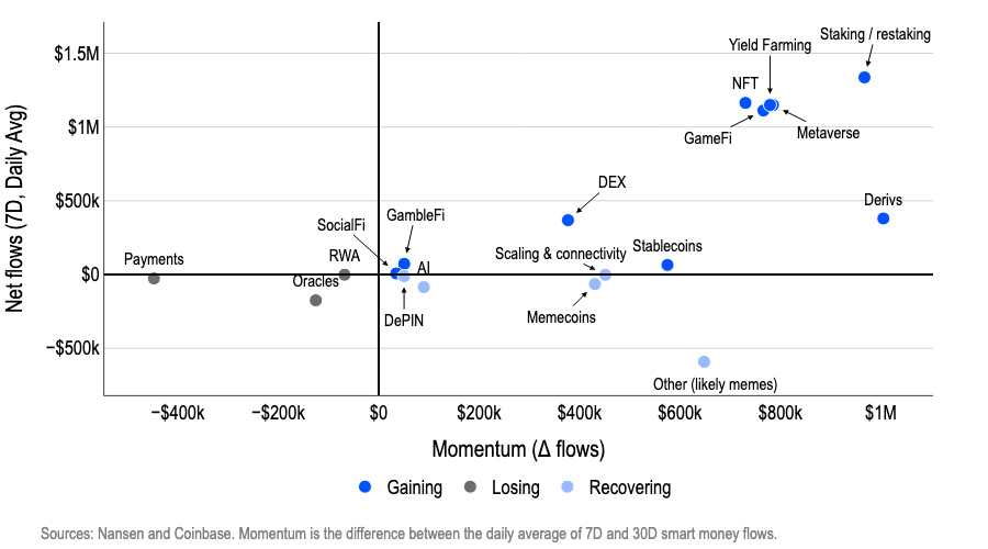 我们认为,资金流向是市场参与者在下跌后信心最直观的晴雨表。近期去杠杆化后,我们观察到价格出现超调而市场叙事趋于模糊。为把握仓位动态,我们建议关注「聪明资金」——包括投资基金、做市商、风险投资机构及持续高收益交易者——当前的资金(再)部署方向。