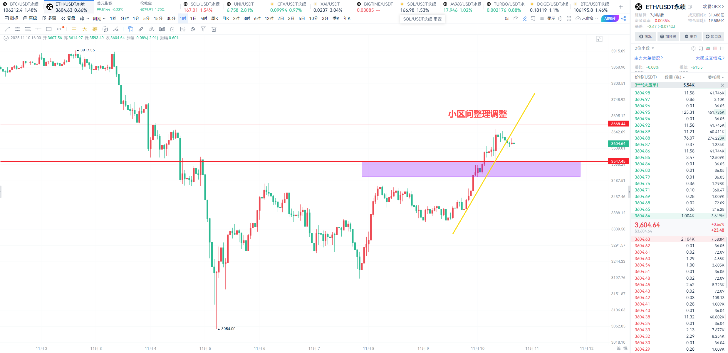 Ethereum is simple: 3640 has resistance; if it breaks, then look at 3880. If it can't break, don't expect a big surge; there isn't that much room for fantasy.