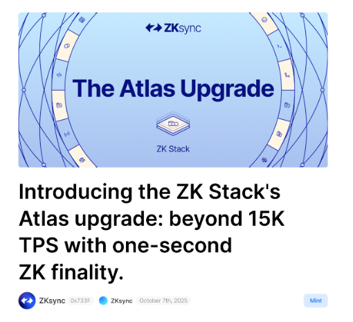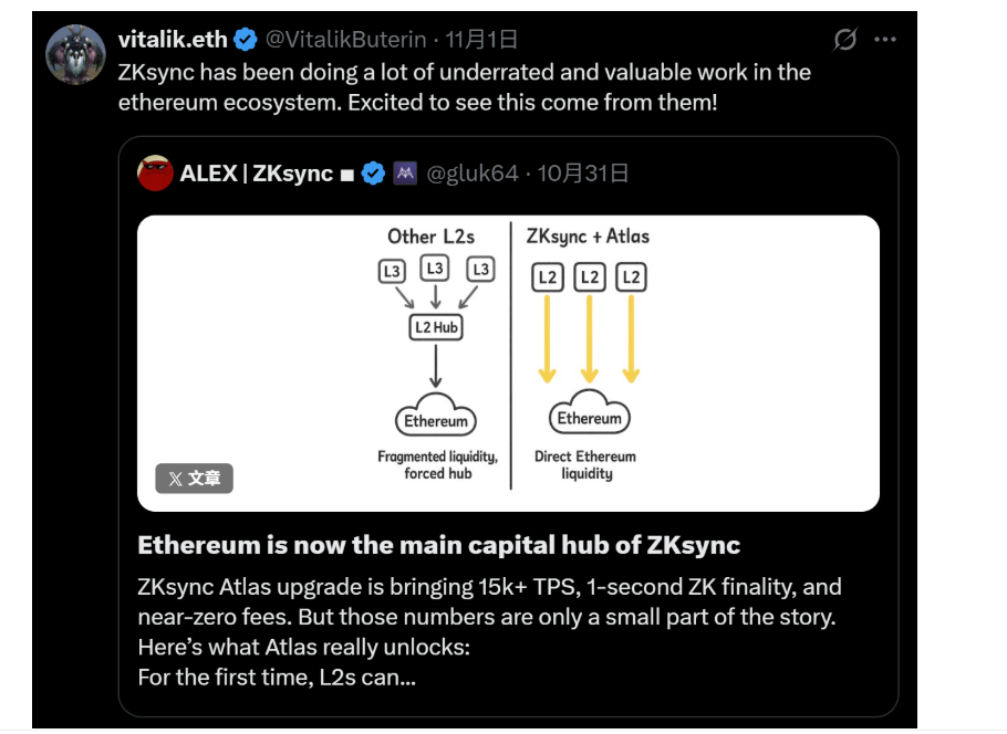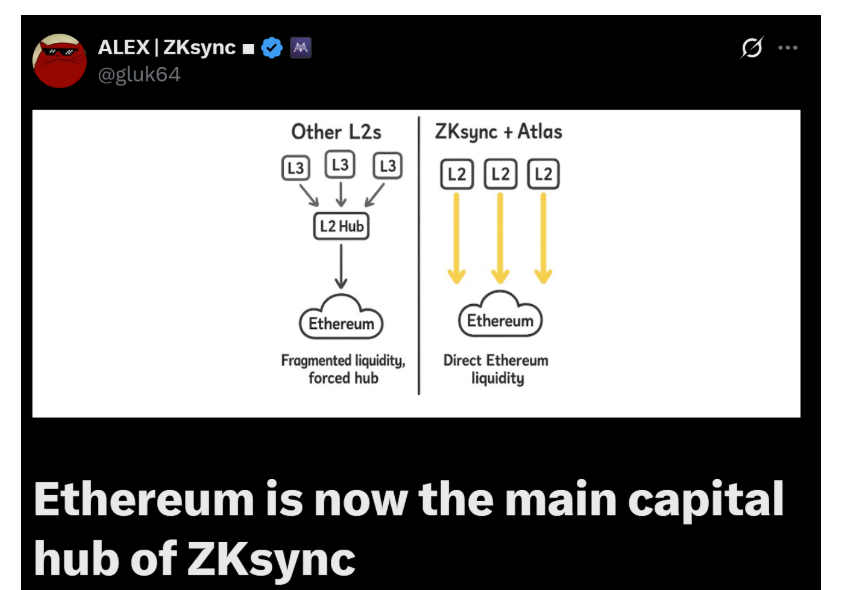 In this context, ZKsync is becoming one of the earliest practitioners; its founder Alex stated that with the completion of the Atlas upgrade, ZKsync has truly achieved verification integration with the Ethereum mainnet — the operating rhythm, confirmation speed, and liquidity of both are almost completely synchronized.