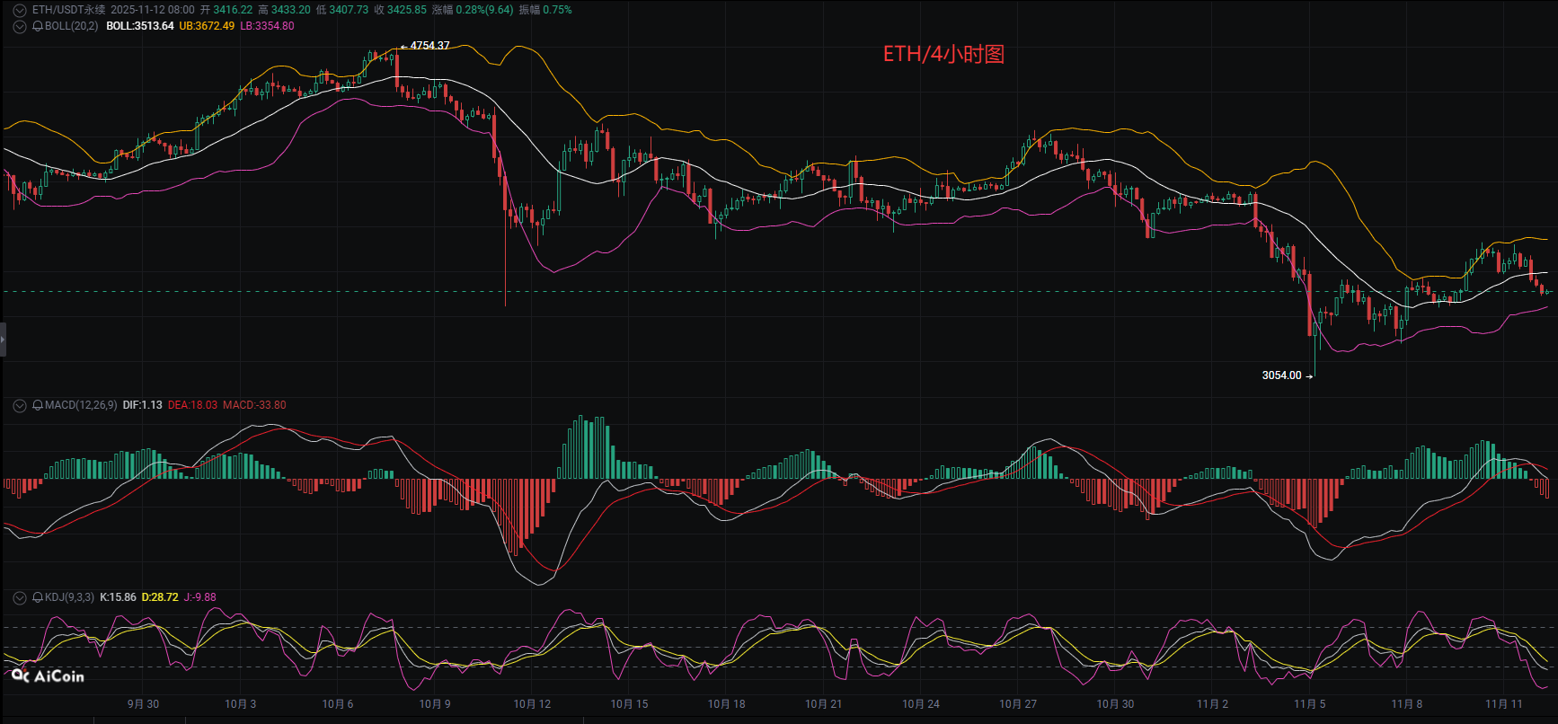 短周期小时图上看,走势三连阴处于回调节奏,中轨支撑已经被打破,且短期反弹力度不强,后续若是价格没有突破企稳2500短线压制,那么走势还有回撤2400一线的风险,望各位做好准备。目前走势延续震荡下行,所以我们思路还是反弹做空为主,回调多单为辅。目前短期压制在3500附近,其次看3560,下方支撑短期关注3400位置破位情况,其次关注3330,