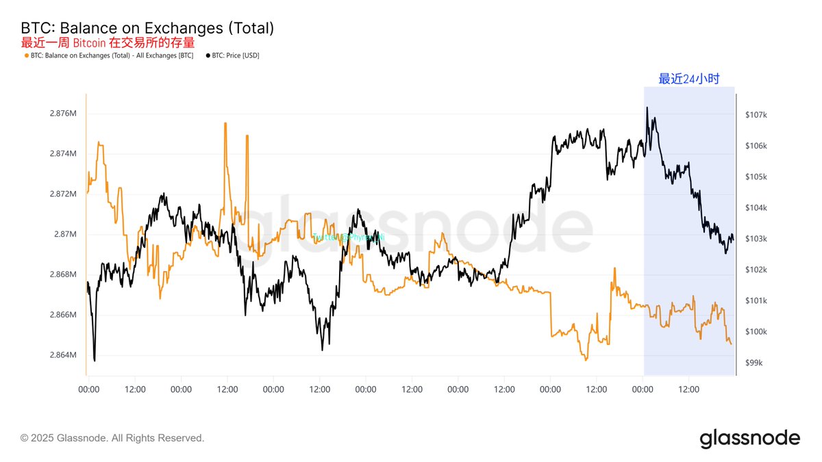 第一,短期价格的波动并不是链上大资金的真实行为,而更可能来自衍生品的杠杆清算、情绪波动或被动减仓。 大多数的投资者并没有选择把 BTC 转移到交易所准备卖,反而在继续从交易所中买入,对于短期价格波动并不敏感。