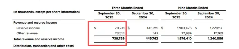 Of the $740M in Q3, the vast majority came from reserve income ($711M), while "other income" (subscriptions, services, transactions, etc.) was only $29M.