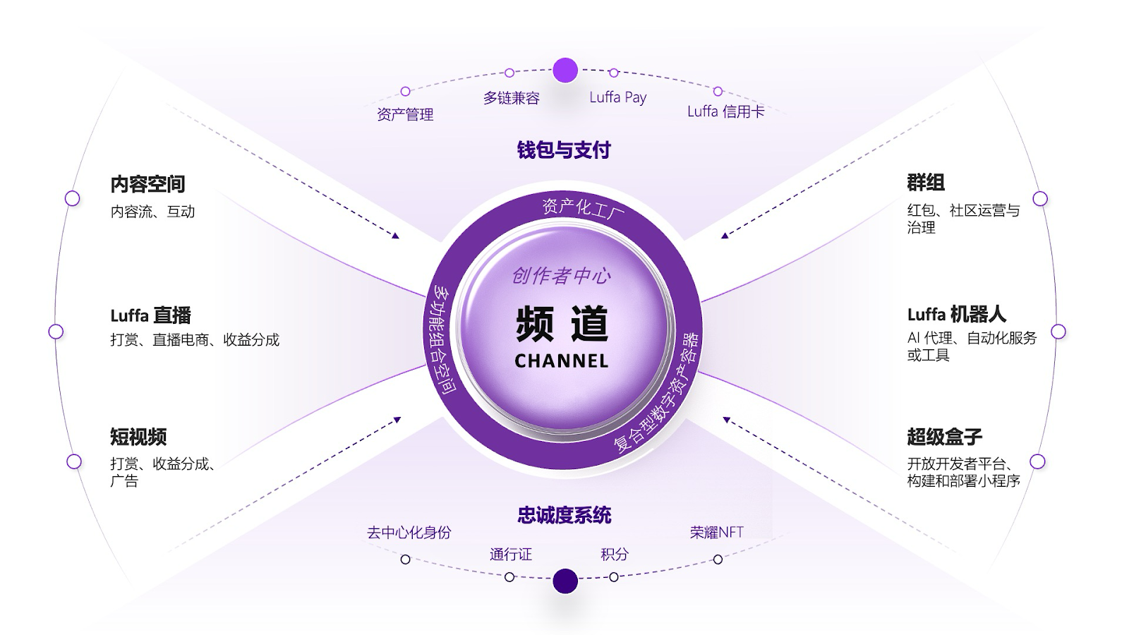 Luffa has built an ecosystem where users and creators can control their own attention, influence, and realize their value. In this ecosystem, the Web3 wallet and identity account system serve as the underlying economic infrastructure, ensuring user privacy and autonomy; the points and token design for creators and fans form the economic system of loyalty; groups, channels, live streaming, short videos, AI agents, and SuperBox mini-programs provide rich capabilities and vast imaginative space.