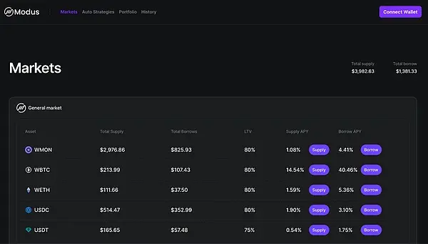 Modus 是 Monad 上的原生借贷协议。它具有与其他任何借贷协议一样的标准市场,并为 LST 提供自动循环策略,以赚取尽可能高的收益。它还引入了密封竞价清算机制,该机制将清算中捕获的价值保留在协议内部,防止其泄露给 MEV 机器人。
