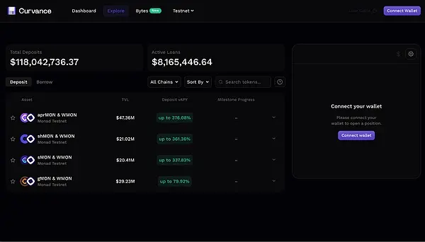 Curvance 是 Monad 上的货币市场,用户可以在这里借贷、存入自动复利金库和优化的 DeFi 策略,并在一个地方获得更广泛的 DeFi 敞口。