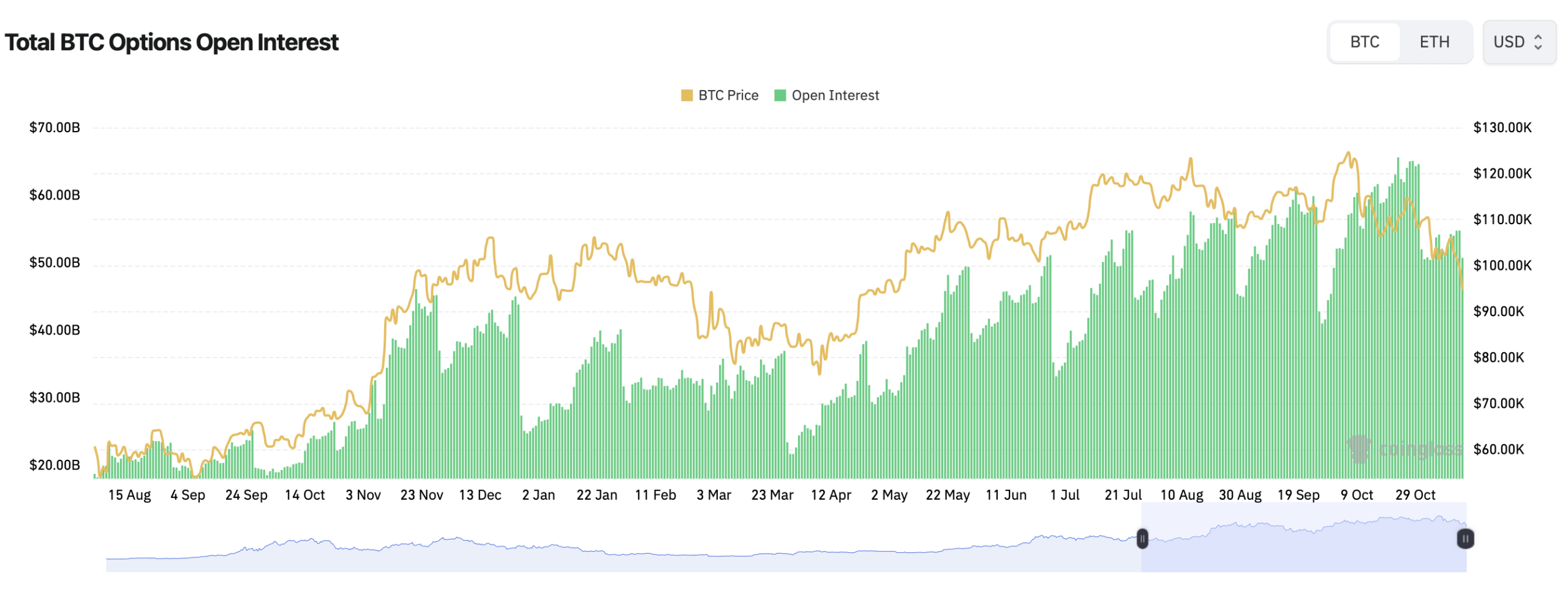 Bitcoin options OI via coinglass.com on Nov. 15, 2025.