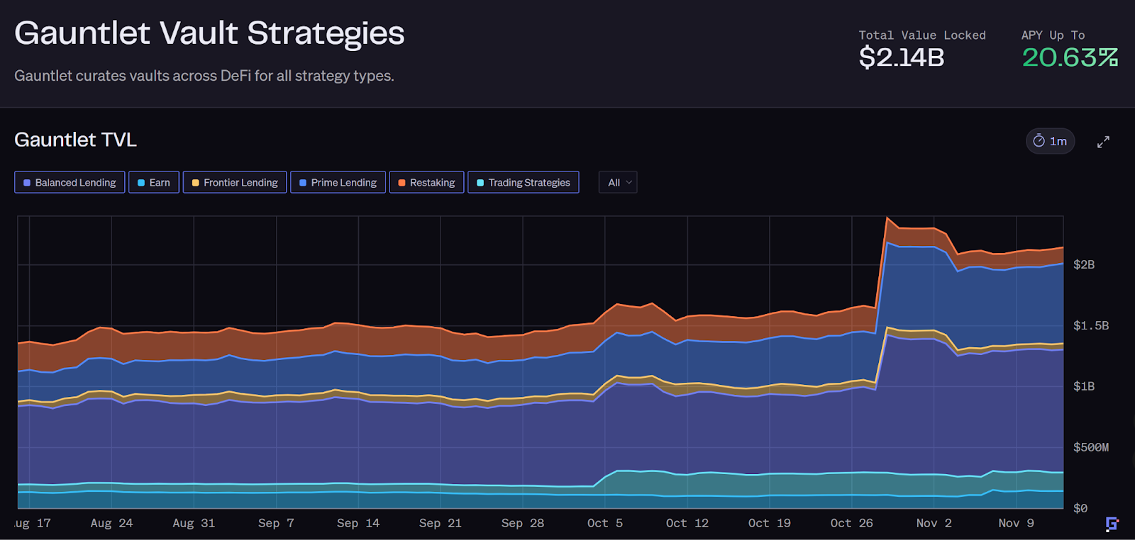 成立于 2018 年,由 Tarun Chitra 等量化金融专家创建,是最早深耕 DeFi 风险管理的团队之一。Gauntlet 以数据驱动的风险评估和管理著称,曾为 Aave、Compound 等提供参数优化服务。在 Curator 模式中,Gauntlet 强调稳健风控,通过自动化量化平台持续校准策略参数和合规性审核。其 Vault 总锁仓超过 20 亿美元,覆盖 Ethereum、Base、Solana 等多链。Gauntlet 的收益主要来自管理费(年化收取),据统计每年管理费收入约 $720 万美元。