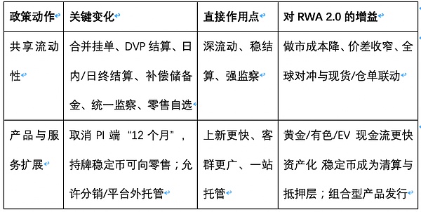 发行更快:PI 端不再受「12 个月」束缚,黄金/有色/EV 场站现金流等新类型 RWA 可更快纳入上线,形成首发—做市—融资的连续动作。