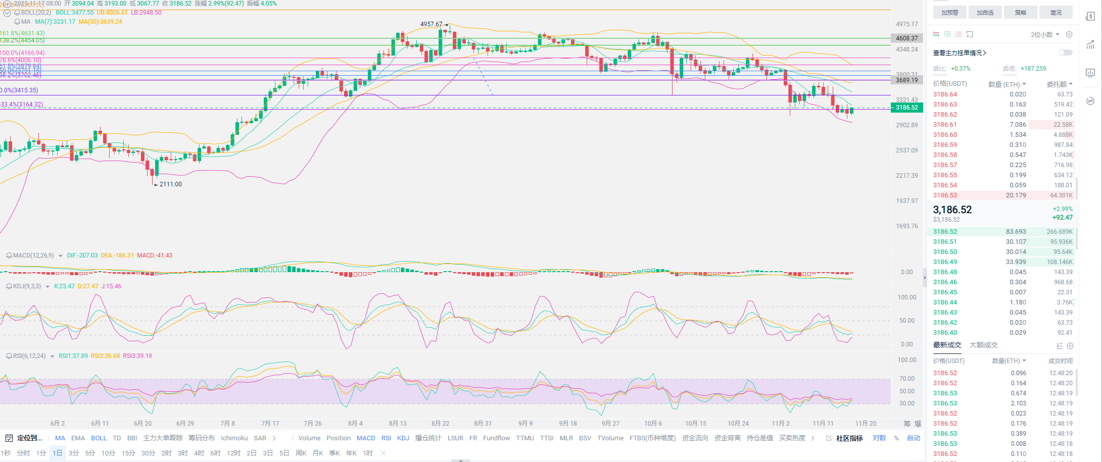 3400的半仓购入以太,反手就来到1400,老崔依旧是选择了信任,将仓位补到2400;整整九个月的时间才看到反馈,虽然是现货,但也足以让老崔产生质疑,过程艰难,但结局是好的就行。现阶段各位的质疑,无非就是收益没有看到,让子弹飞一会儿,去验证自己的猜想。币圈对于未来,是没有其它的选项。尤其是川普的蓝图,现在的币圈远远不足,增长是唯一的选项。不要质疑自己的眼光,大家大胆持有,结果不会辜负大家。老崔也看不出,最低位置的反弹,强烈说明一下,老崔没有预知未来的能力,能带给大家的就是减少亏损,扩大盈利。最后的结论,有现货的用户,做空去减低自己的负担,没有现货的用户,就按照老崔的方式去获取盈利,今日话不多说,老崔要出发了,有问题各位一定要及时来问。文末,老崔暂时不接平台,也不做群聊,各位招商,别再找老崔,感谢的各位的理解,有需求老崔会去寻找大家!