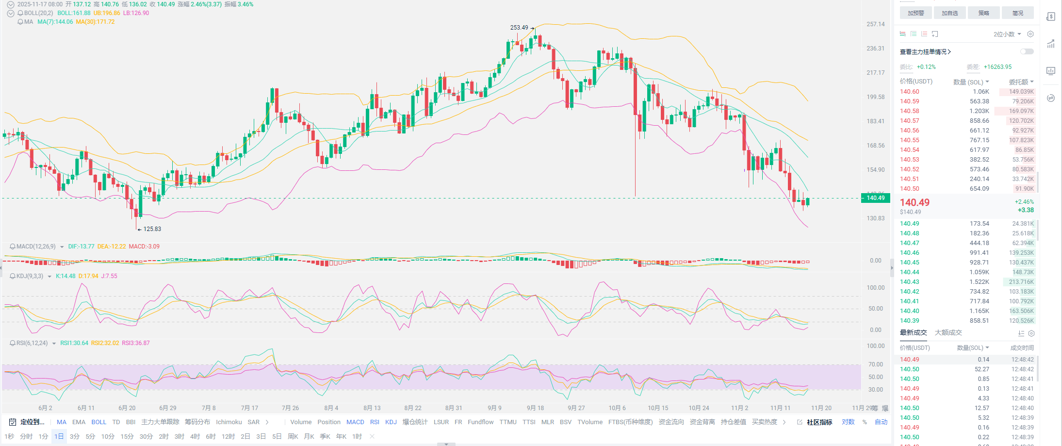 就看各位如何选择?下行阶段要说服自己去做多,是一件极难的事情。但做多的收益,肯定是高于空头的选项。如果各位考虑短期的盈利,做空也是选择,但空头的收益,不能太大,要克服贪欲,及时撤离才是王道,遵循一个原则,入袋为安。看长线也要看巨头的们持仓情况,能够看到的巨头,基本都是以持有为主,无论是灰度持有SOL的ETF,还是贝莱德以及各大平台对于比特币的定投,也包括川普这一类型的风云人物,基本都是采取下行购入的方式,这代表着以年为单位的投资,回馈肯定还有。老崔依旧记得去年同时期的川普,带动老崔的仓位,一度老崔也埋怨过他的选择,从4300跌到3400,他的购入也让老崔拥有了底气。