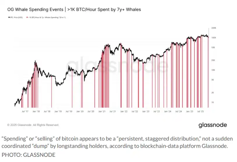 数据显示,部分「巨鲸」近期加快了比特币抛售节奏。部分分析师表示,这一现象值得关注,但未必是恐慌信号。他们指出,近期抛售可能反映的是稳步获利了结,而非恐慌性抛售,这一模式与此前牛市周期中的表现一致。
