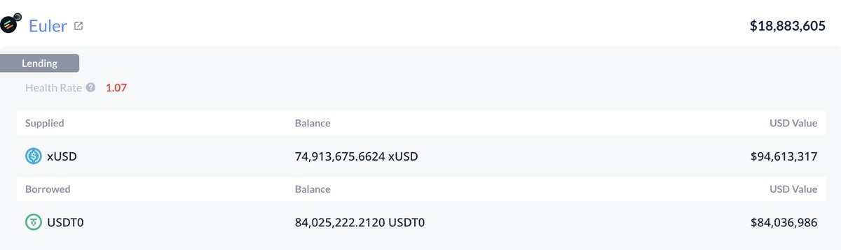 在底层,Stream 将存款分散给追求更高收益的外部基金经理,并在 Euler、Morpho 和 Silo 等其他借贷协议上进行杠杆操作。他们借入、再借出,将资金循环存入合作伙伴的金库,甚至将xUSD本身用作抵押品,从而创造循环流动性并推高总锁定价值 (TVL)。实际上,Stream 反复抵押其自身的合成代币,构建了远超实际资产的递归杠杆。