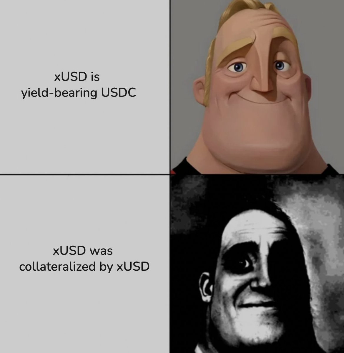 用户以为他们存入的是 USDC/ETH/BTC,收到的却是 xUSD,这是一种收益型合成货币,旨在像 1:1 稳定币一样运作。