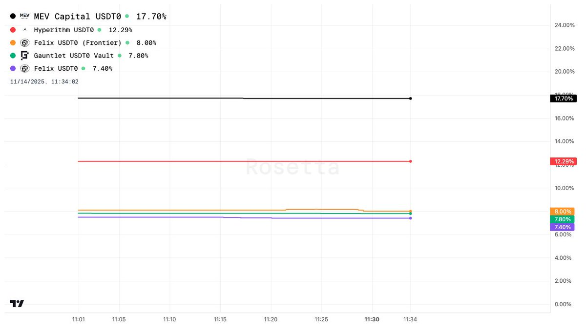 逐区块收益追踪:每个金库的收益都直接来源于链上累积。即使没有用户交易更新金库状态,利息也会在每个区块持续累积。Rosetta 能够捕捉到这种实时动态,从而消除噪声、过时的年化收益率和人为平滑的收益。