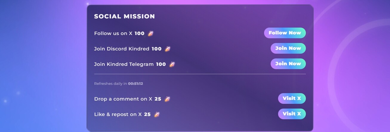 进入官网(链接:https://waitlist.kindredlabs.ai/)并通过谷歌账号进行账号登录,完成每日社交任务。