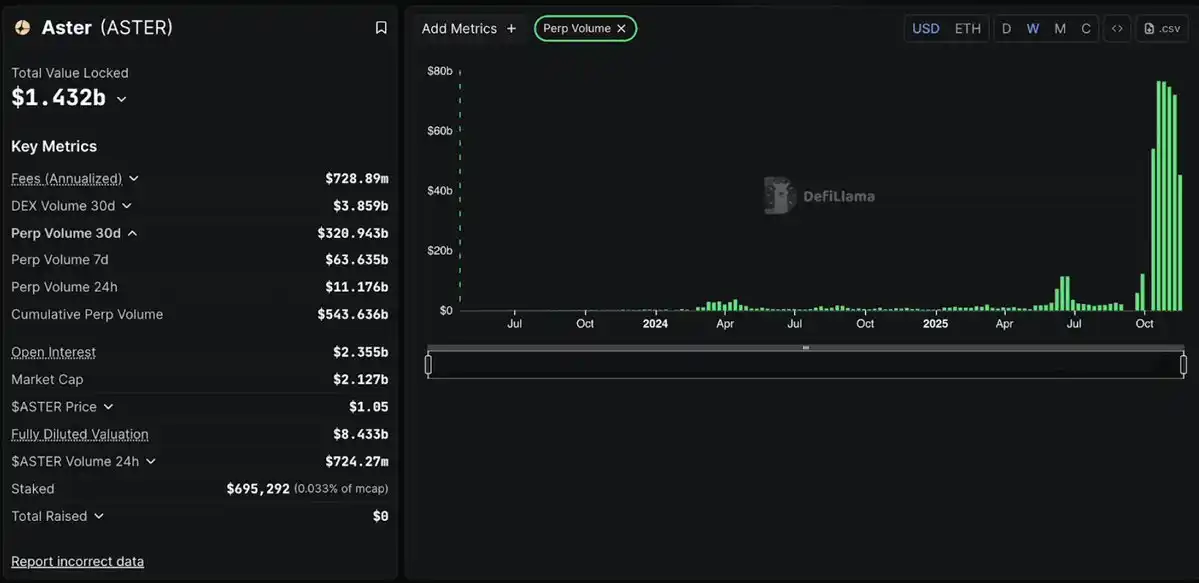 On October 5, 2025, DefiLlama, one of the most trusted data sources in the crypto industry, removed Aster's data, citing that its trading volume was almost perfectly correlated with Binance's (1:1 correlation).