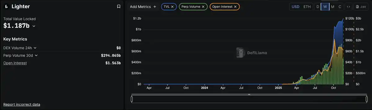 Lighter launched on October 2, 2025, and within weeks, its TVL surpassed $1.1 billion, with daily trading volume reaching $7-8 billion and over 56,000 users.