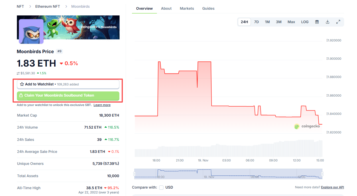 Badge Four: CoinGecko X Moonbirds, simply add Moonbird to your Watchlist on CoinGecko, you need to register a CoinGecko account via Google email first (link: https://www.coingecko.com/en/nft/moonbirds);