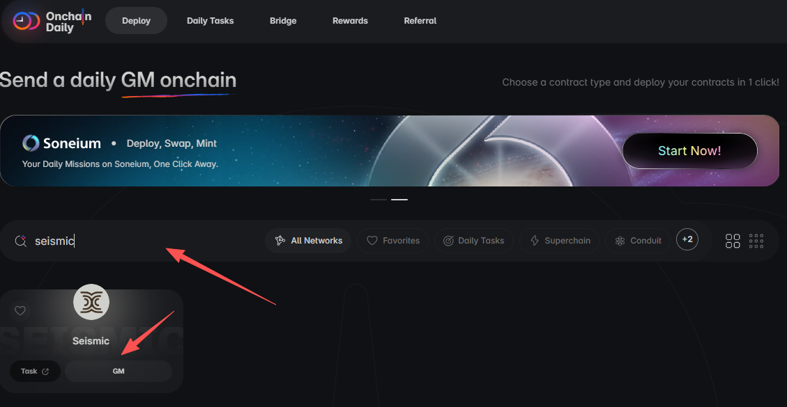 STEP 2. Deploy contracts (link: https://www.onchaindaily.io/).