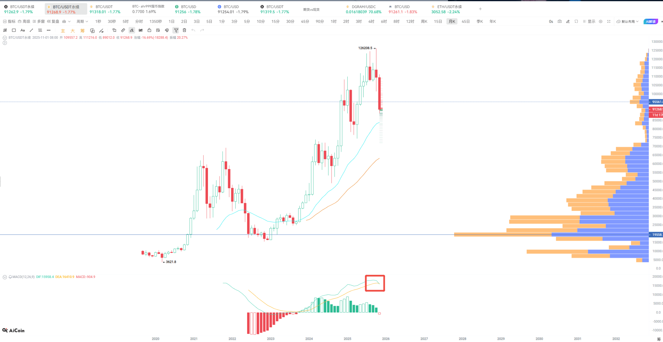 另外必须再强调下大饼月线的 MACD 信号,这个指标的指向性历来很准,大家一定要多留意。对了,给大家提一嘴,现在 AiCoin 的 PRO 权益超 30 个,AI 写指标、主力成交追踪、爆仓统计这些实用功能全都有,分析行情能省不少力。