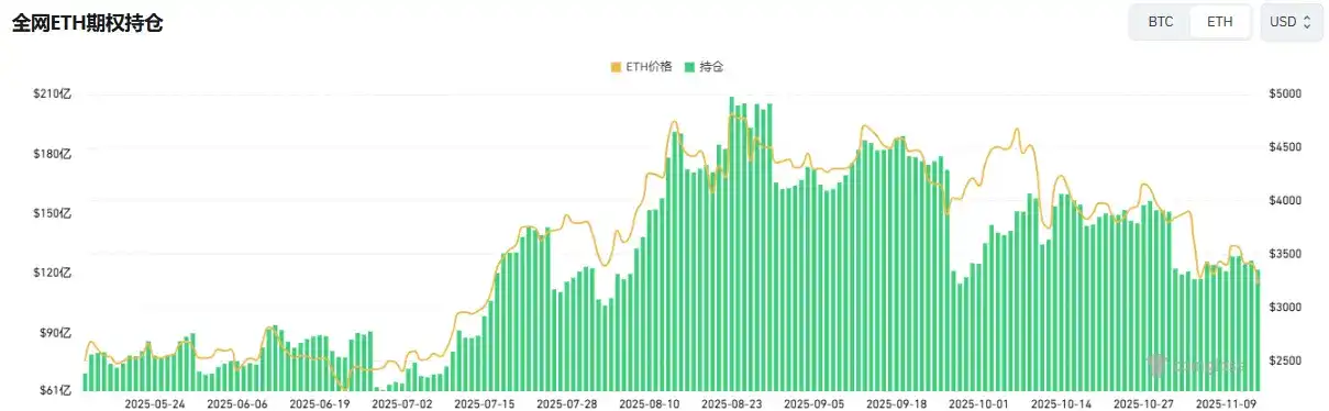 在链上层面,短期资金主导者仍是巨鲸与高频地址,但他们不构成价格支撑的力量。近期坚持做多 ETH 的麻吉大哥连续被清算,一定程度上打击了交易信心。根据 Coinglass 数据,ETH 合约总持仓量自 8 月高点以来几乎减半,杠杆资金正在快速收缩,这意味着流动性和投机热度同时降温。