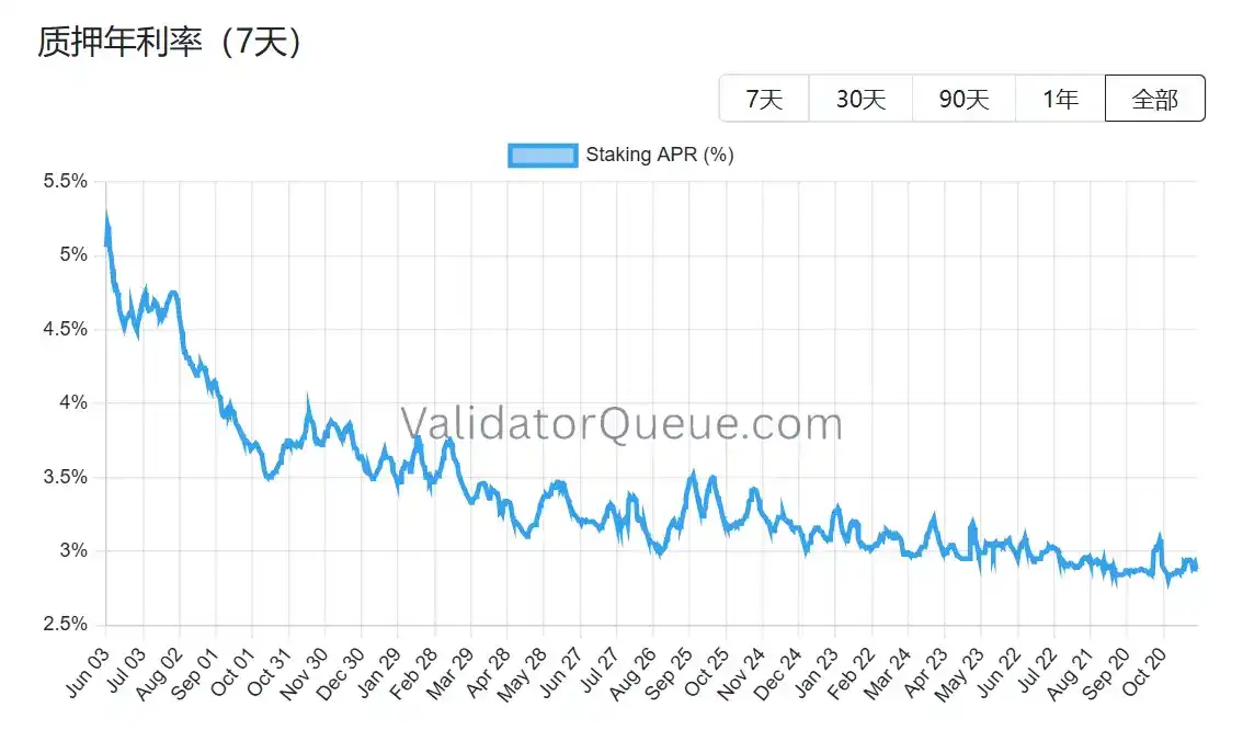 二是质押收益率下降和借贷成本上升,使得杠杆质押无利可图。当前以太坊的年化质押收益率约为 2.9% APR,远低于 2023 年 5 月创下的 8.6% 的历史最高纪录。