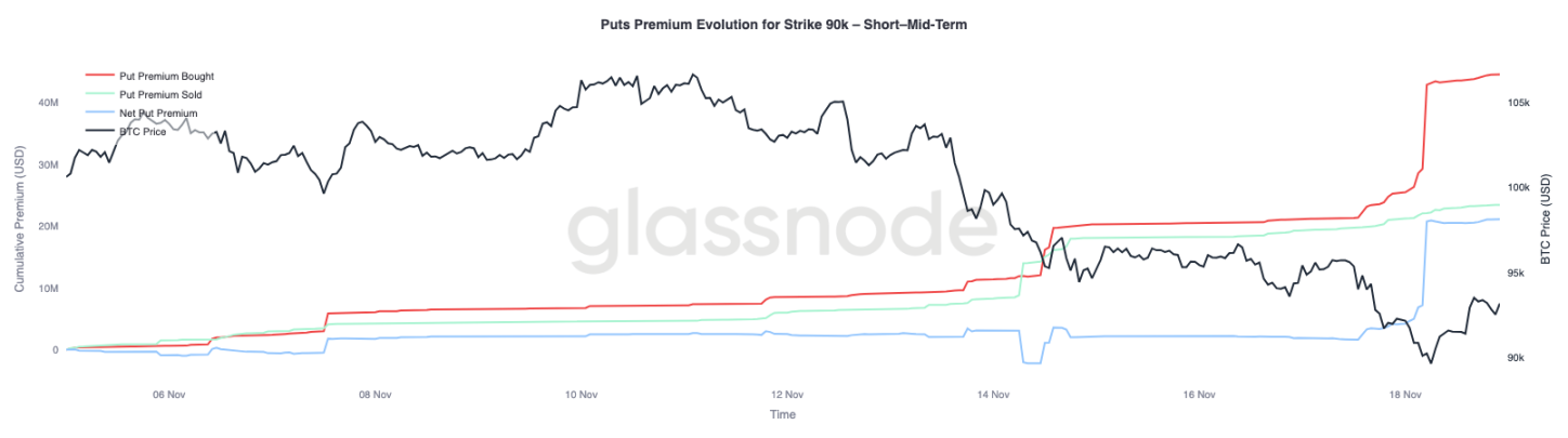 The significant repricing of the $90,000 put options highlights the acceleration of downside hedging activity when key price levels are breached.