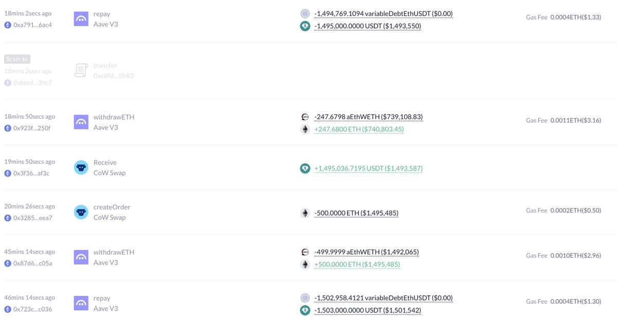 在过去的3天里,他以平均价格3046美元出售了所有18518个$ETH(价值5641万美元)以偿还债务——损失超过2500万美元。