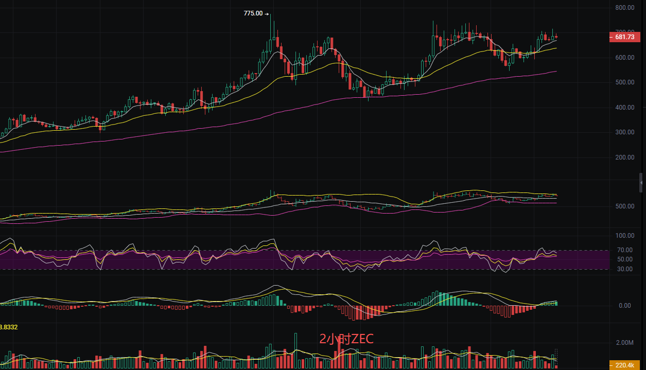 发稿前大零币现价683,丽盈判断当前大零币ZEC明确的上涨趋势,技术面信号较为强劲,短期动能增强。短期EMA形成黄金交叉,价格位于均线之上,与看涨吞没形态形成共振,进一步确认了市场的看涨倾向。丽盈看见价格已接近关键阻力位775,短期内可能面临回调压力。