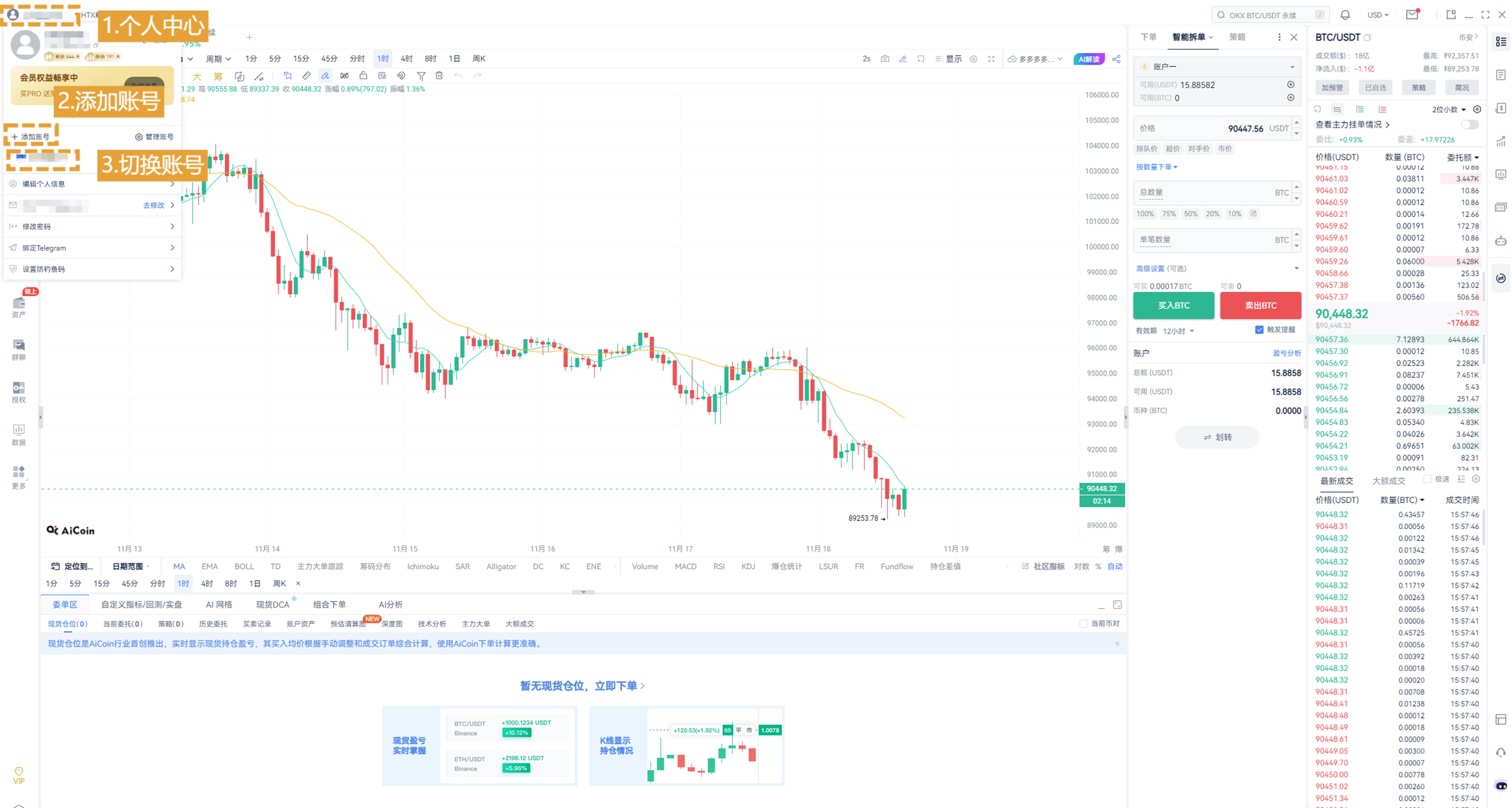 3. 【账号】支持添加AiCoin多个账号快速切换
