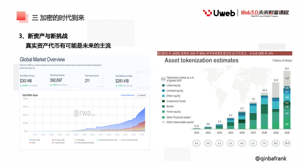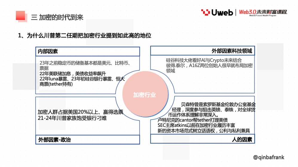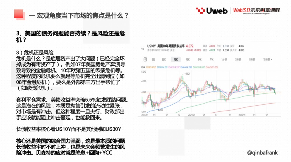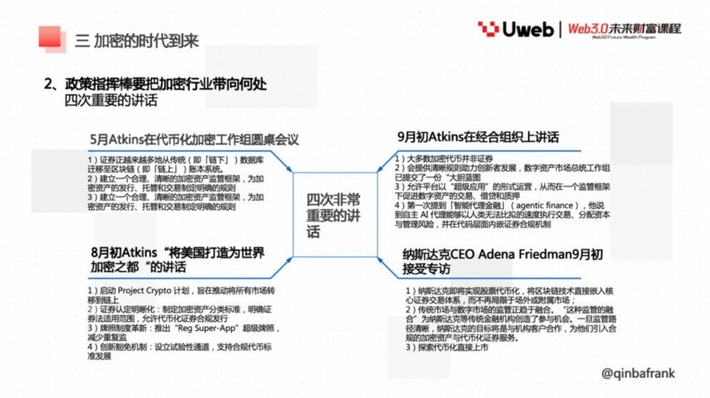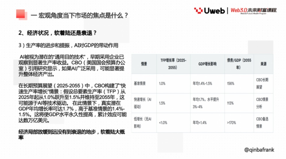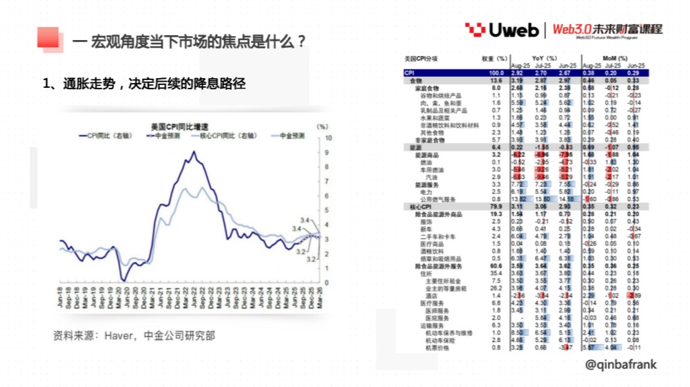 2025 年 9 月 29 日上午,香港 Uweb 商学院《Web3.0 未来财富课程》邀请宏观金融专家 QinbaFrank 老师,以 《宏观及产业视角看市场走势》 为主题,展开系统授课。课程以宏观经济运行逻辑为主线,结合产业周期与数字资产市场的互动关系,提出了 「一体两翼」 的分析框架,为投资者在复杂市场环境中识别趋势与定价逻辑提供了思路。以下为演讲全文: