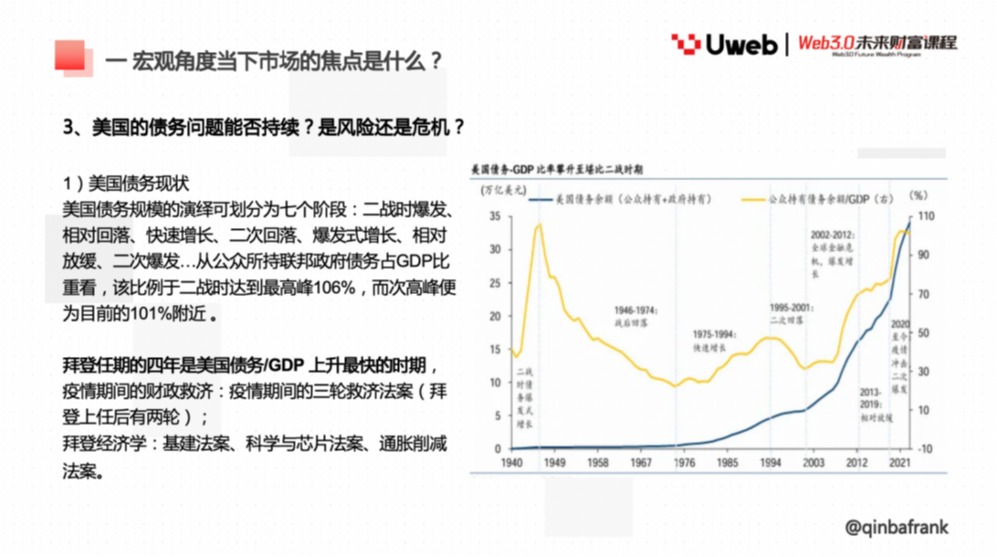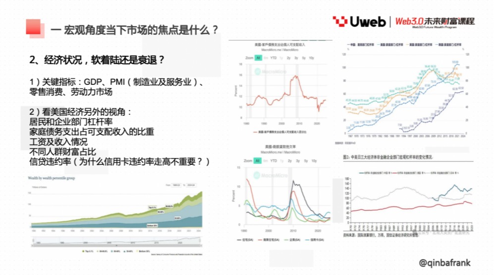 感谢 Uweb 和于校长的邀请,今天和大家分享一些我对宏观经济和数字资产领域的看法。我最早在互联网大厂工作了很多年,2020 年和 2021 年之后更多集中在二级领域。后面 2022 年开始在推特上写一些内容,当时和很多朋友在一起交流。