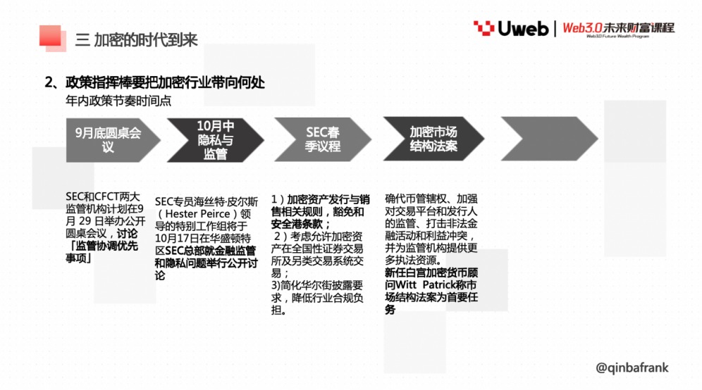 在第三部分中我们主要分析了为什么说加密行业从过去人人喊打到成为监管香饽饽,以及新的监管要把加密领域带到哪里。还有就是大换手时期,我们如何看待市场价格的框架,买方和卖方分别是谁,其中的博弈关系是什么,强弱关系如何。