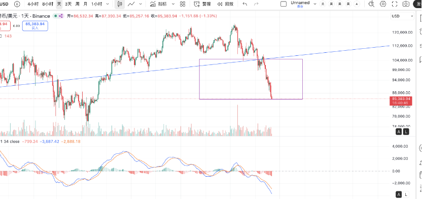 From the head and shoulders pattern of BTC, it has already fallen to the target position. As for how much lower it can go, it is difficult to predict in advance. Generally speaking, even with a short-term spike, the 75k position should be hard to break. More precise tracking can only be done on open interest, trading volume, and funding rates. However, based on experience, after such a large-scale pattern reaches the target position, the short-term low will not be too far away, essentially just a spike difference. If U.S. stocks can stop falling tonight, I estimate that there will be a period of consolidation ahead. Or if there is a big spike tonight, that would be the best outcome, triggering short-term panic selling, which would at least stabilize the market for now.