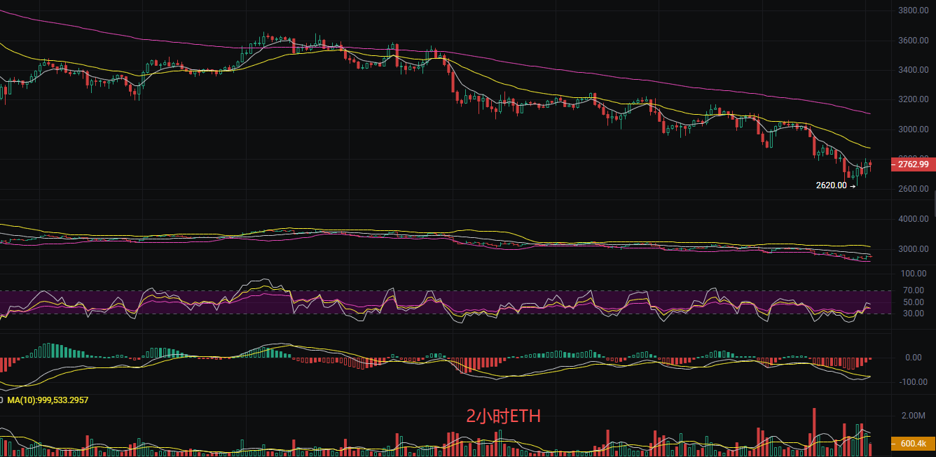 发稿前以太坊现价2760,丽盈观察目前盘口以太ETH在2620强支撑与2850强阻力之间波动。技术面虽然短期内三连阳形态与2620支撑形成看涨共振,反弹信号有所显现,但均线系统仍呈空头排列,表明整体趋势偏弱,短期内突破区间的可能性较低。日线持续下跌形成多个大阴线空头力量较强。