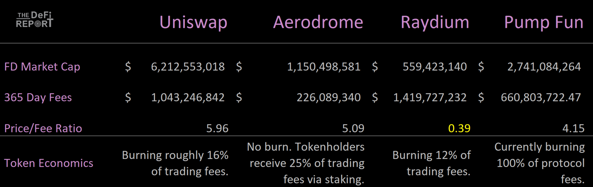 与 Aerodrome(Base)、Raydium(Solana)或 Pump(Solana)相比,与 UNI 持有者一致的拟议变更对 Uniswap 的相对估值没有产生影响。