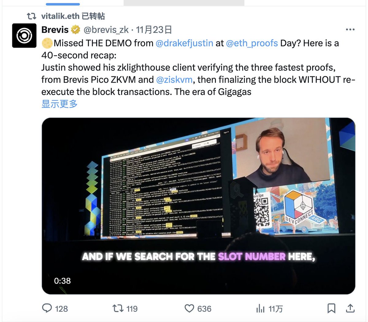 @VitalikButerin 又一次转发了 brevis @brevis_zk 关于如何验证 Brevis Pico ZKVM 和 @ziskvm 中最快的三个证明,在不重新执行区块交易的情况下完成区块最终确定。
