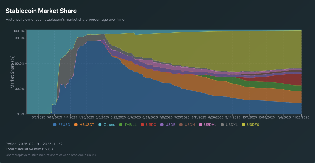 图片说明:HyperEVM 稳定币市场份额