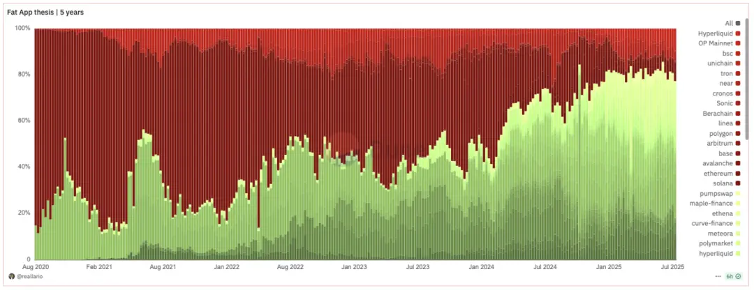 应⽤的价值捕获则更加直接:通过⼿续费、订阅费、服务费等⽅式产⽣可验证的链上收⼊。这些收⼊可以直接⽤于代币回购销毁、分红,或再投资于增⻓,形成⼀个紧密的反馈闭环。应⽤的收⼊来源变得坚实——更多来⾃实际的服务费率收⼊,而⾮代币激励或市场叙事。
