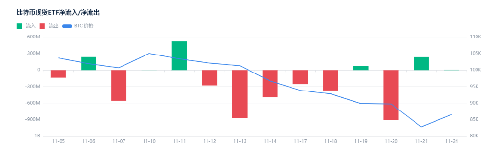 ● Citigroup's research indicates that for every $1 billion that flows out of Bitcoin ETFs, the price drops by about 3.4%. According to this model, the outflow of ETF funds has exerted significant downward pressure on Bitcoin prices.