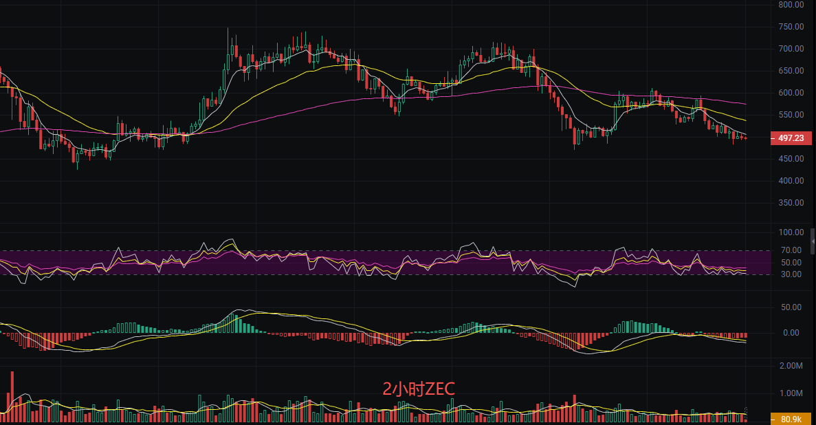 Before publication, the current price of Zcash is 495. Liying assesses that the current ZEC market is in a downtrend, with technical indicators showing a bearish arrangement of moving averages, and the price is below the moving averages, confirming the downward trend. However, the continuous shrinkage of trading volume indicates insufficient downward momentum in the market, and the price is approaching a strong support level at 470. At the same time, a bullish engulfing pattern has appeared, suggesting a possible rebound in the short term.