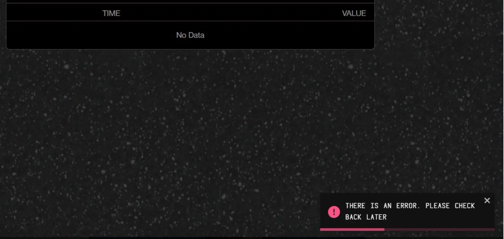 启动时刻,守候在屏幕前的用户并没有迎来预想中的丝滑体验。大部分人面对的是一个只有“ Data”字样的黑色背景屏幕,底部还有一行冰冷的粉红色报错:“THERE IS AN ERROR. PLEASE CHECK BACK LATER”。没有解释,没有排队提示,只有令人焦躁的未知。