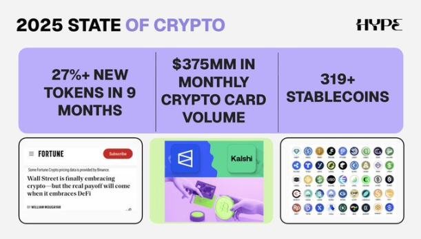 • 加密货币支付卡选择激增,仅 2025 年 10 月,可追踪的链上卡交易量就达 3.75 亿美元