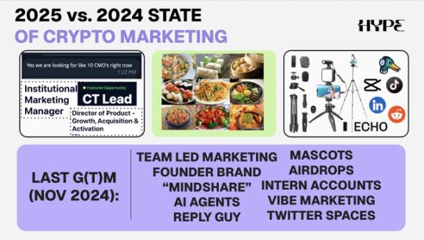 • 由于重心转向用户获取和留存,绩效营销再度兴起。这要求具备完善的追踪系统(链上、产品 / 网站、渠道)、增长实验、付费与免费媒体结合、从社交任务到流动性任务的演变、精准 KOL 营销等。