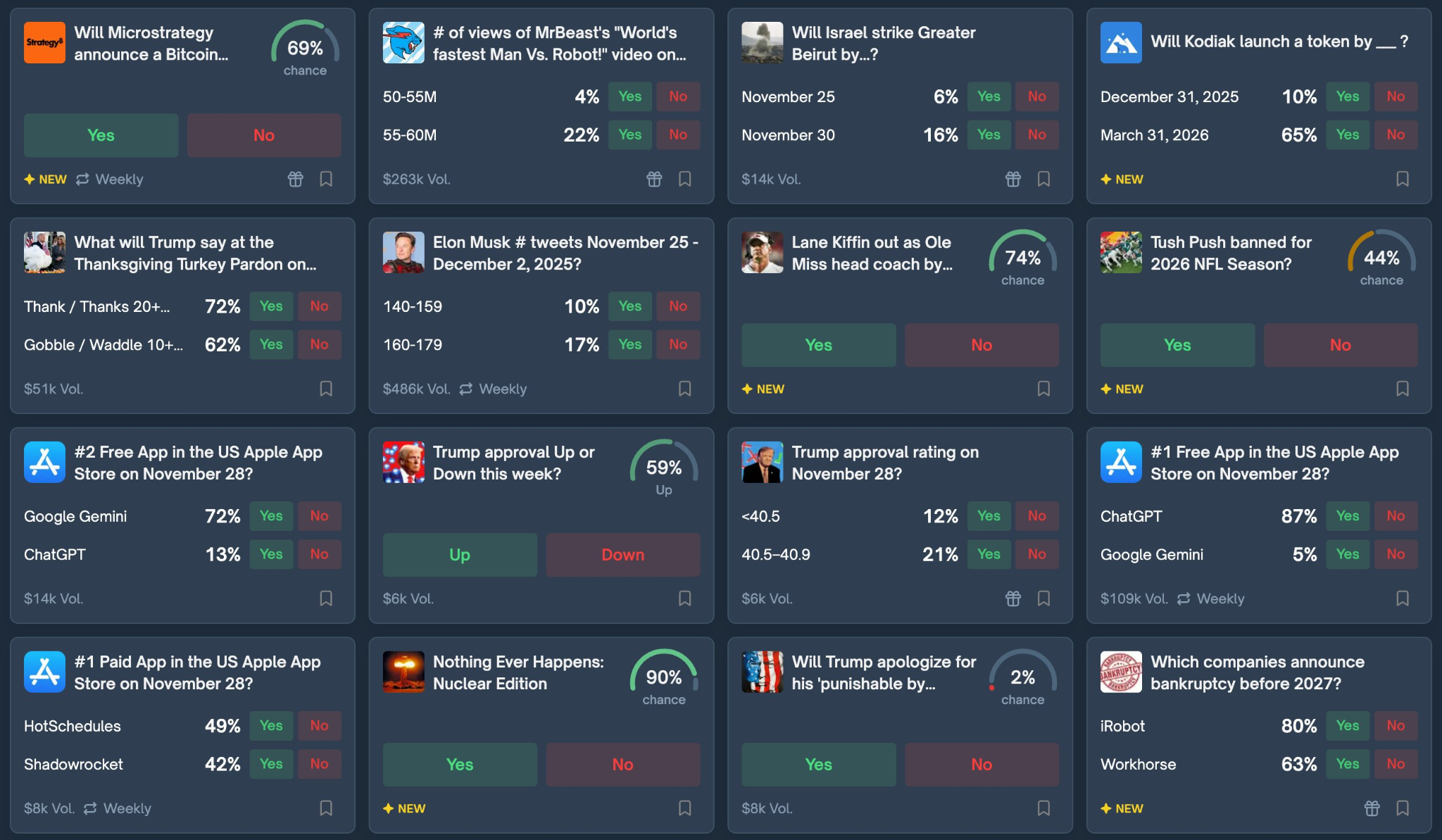 我们已经在 Polymarket 上实时见证了这一点:政治类市场的预测性已经超过任何民调聚合器;美联储相关市场往往会先于经济学家更新预测之前已经出现波动;财报类市场则会提前数周把结果反映到价格中,而这些信息要很久才会出现在分析师报告里。原因不是交易员更聪明,而是他们的激励是“确保预测正确”,而不是追求噱头。