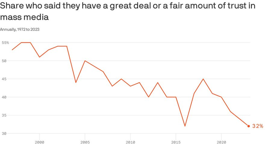 这种模式是不可持续的,我们每个人内心深处都明白这一点。我们建立的信息系统奖励的是参与度而非准确性,声音大比准确性更重要。社交媒体让问题更恶化——如今,最热门的言论胜出,而与事实是否相符则无关。粉丝最多的人成了专家,而专家的定义变成了点赞数最多的东西。