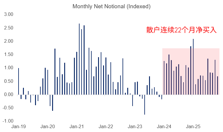 而散户买入的更多还是 ETF 为主,所以从实际的数据来看,即便是今年为止已经有过两次 VIX 超过 25(恐慌),一次 VIX 超过 60(超级恐慌)但散户都在坚持购买,尤其是越下跌越买的,这次几乎都是散户。