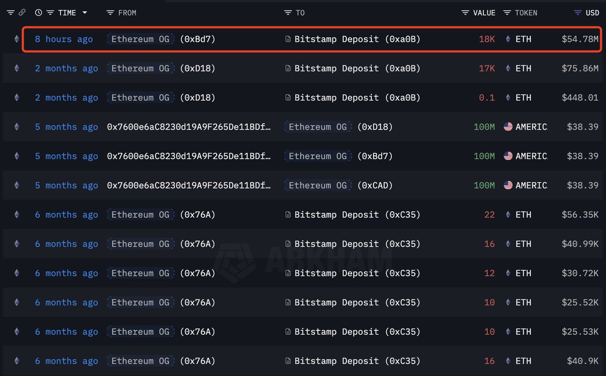 An Ethereum OG just deposited another 18,000 $ETH($54.78M) into #Bitstamp 8 hours ago.